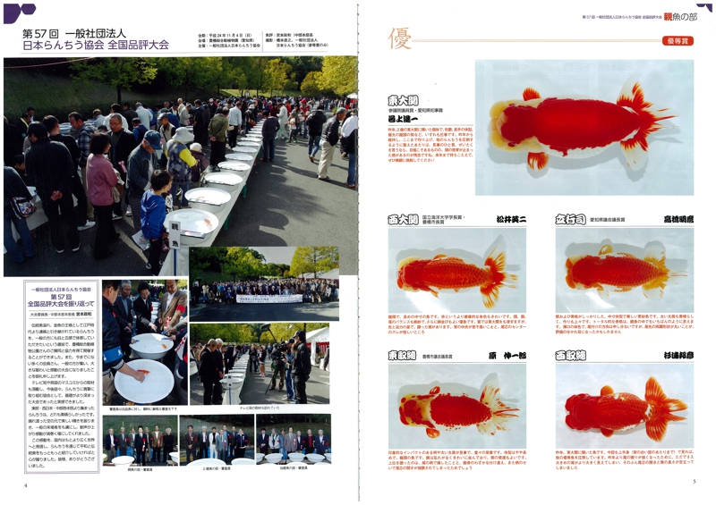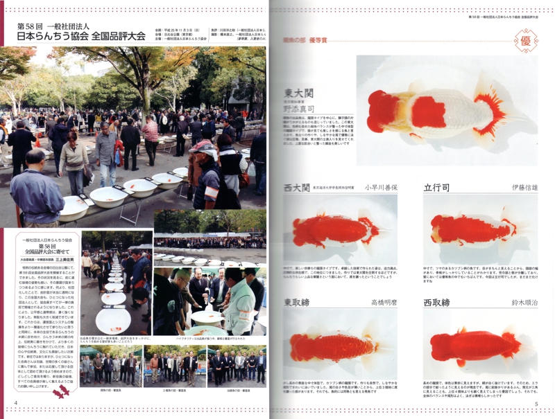 一般社団法人日本らんちゅう協会の 3大会と各支部の14大会の中から、 上位入賞個体を網羅。 ご注文No.2013 A4判/96ページ 定価:2,160円(税込)